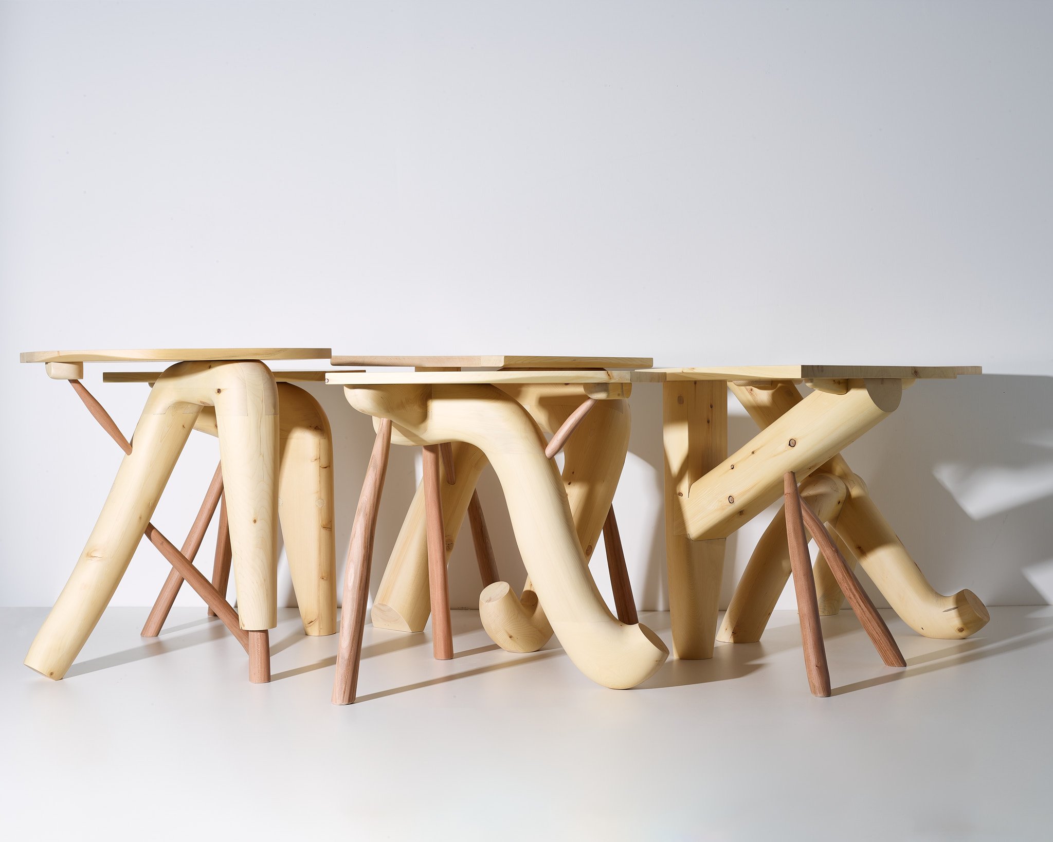 All made from Alaskan yellow cedar, black cherry. 20” high.